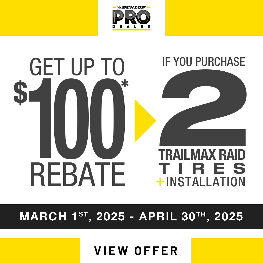 Purchase a SET of TrailMax Raid tires with 2 rebates available.